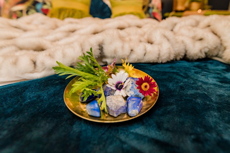 This bedroom embodies the essence of the lapis lazuli crystal, exuding a luxurious and tranquil ambience reminiscent of the deep, rich blues of this prized gemstone. The celestial blue walls evoke serenity and sophistication, creating a serene and sophisticated space to retreat to.